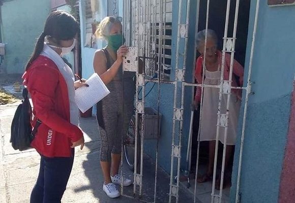 Los futuros profesionales identifican síntomas gripales y posibles casos de la COVID-19 en el territorio. Foto: Greidy Mejía Cárdenas/ Escambray.