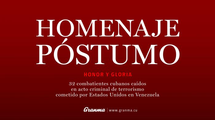 Encabezado por el General de Ejército Raúl Castro Ruz, Líder al Frente de la Revolución Cubana, y por el Primer Secretario del Comité Central del Partido y Presidente de la República, Miguel Díaz-Canel Bermúdez, se realizó el Primer Homenaje a los Héroes Caídos en el Areopuerto José Martí.Cuba honra y recibe los restos mortales de los 32 combatientes asesinados por EE.UU. en la agresión a Venezuela