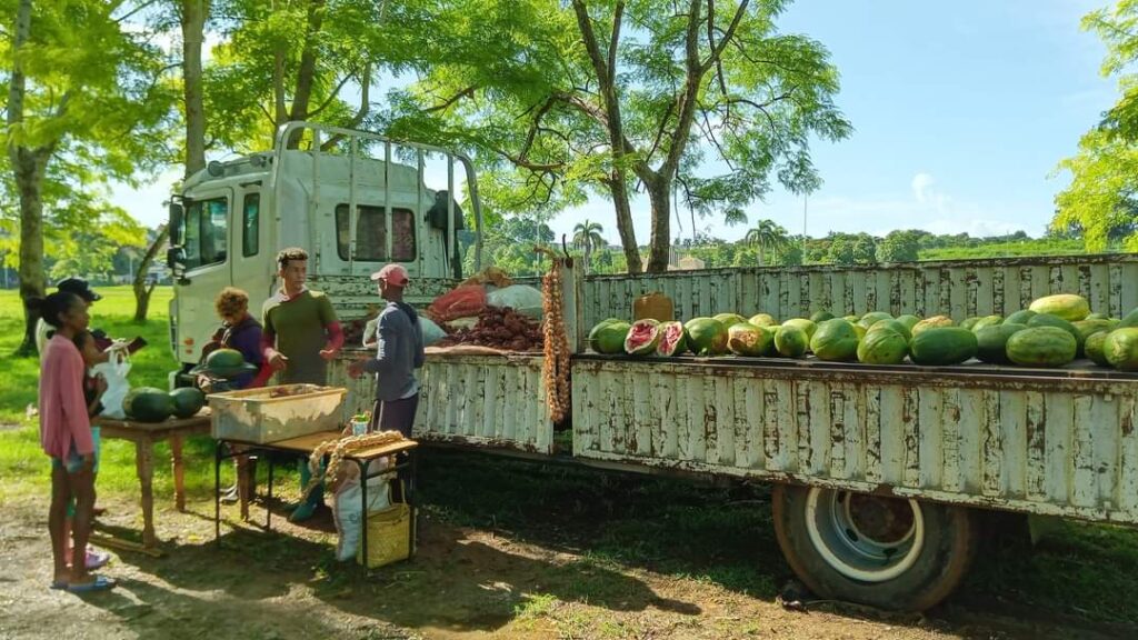 Los manzanilleros acuden en busca de los alimentos de la semana, los que en ocasiones se comercializan con precios más bajos de lo habitual // Foto tomada de la red No solo se ofertan productos del agro, también pueden adquirir cárnicos, lácteos y los ofertados por la empresa de refrescos y bebidas// Foto tomada de la red El queso es uno de los más demandados en la feria por que se comercializa con un valor inferior al habitual el resto de la semana // Foto tomada de la red Las diferentes bases productivas acuden con viandas principalmente // Foto tomada de la red Las frutas y especias también se pueden encontrar en estos comercios sabatinos // Foto tomada de la red El bosque manzanillero es sede cada sábado de la feria agropecuaria // Foto tomada de la red Productos de conservas y refrescos, entre los de mayor demanda // Foto tomada de la red