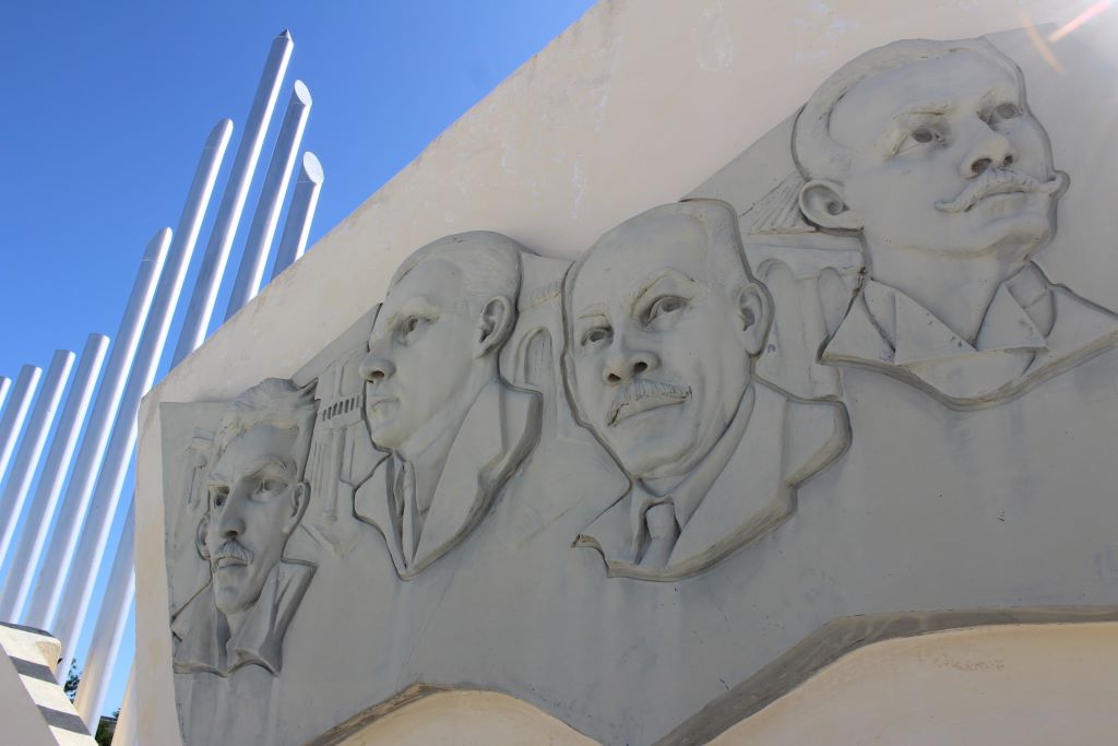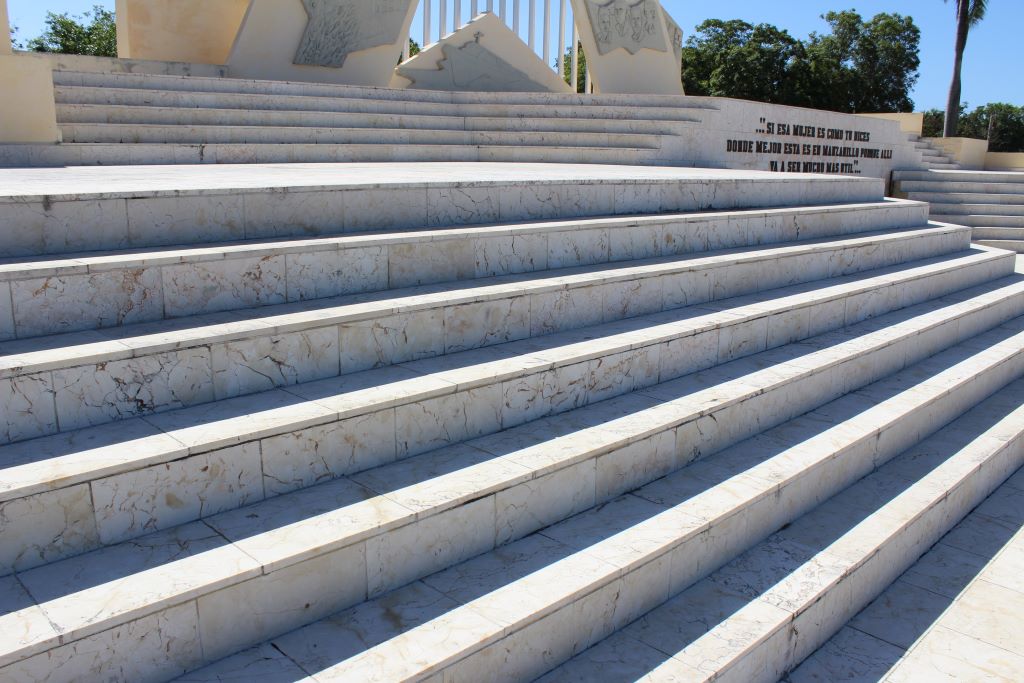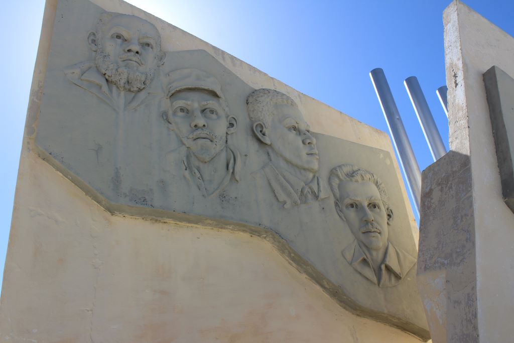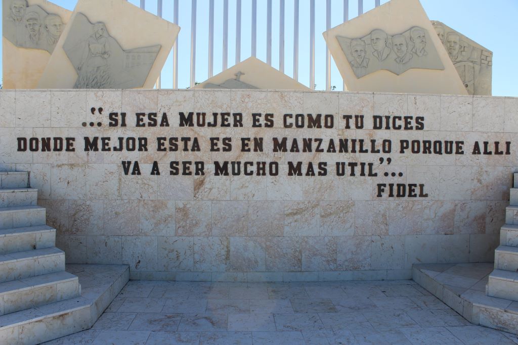 Pedro Sotto Alba, expedicionario del yate Granma. Capitán de la Sierra; ascendido póstumamente a Comandante; Manuel Fajardo Rivero (Piti), comandante, médico, constructor y activo luchador contra bandidos; y René Vallejo, médico internacionalista, comandante guerrillero. // Foto: Marlene Herrera En el centro aparece la frase de Fidel referida al valor y coraje de Celia Sánchez // Foto: Marlene Herrera Los 12 escalones que unen las plataformas laterales y la principal representan el reducido número de hombres con que contaron las tropas insurrectas y el Ejército Rebelde en dos momentos históricos // Foto: Marlene Herrera A ambos lados del monumento, 10 palmas reales en recordación del 10 de octubre de 1868, inicio de la lucha por su independencia // Foto: Marlene Herrera