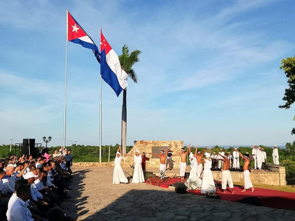 La jornada estuvo marcada por la puesta en escena de la alegoría Raíces en el altar más sagrado, bajo la dirección artística de Wilder Justis Domínguez, que integró danza, música folclórica y símbolos de la identidad nacional; participaron el Ballet Folclórico de Granma, el proyecto infantil Arcoiris en Movimiento, la Banda Municipal de Concierto de Manzanillo y el sexteto Virama, en una representación que exaltó la herencia cultural de los primeros libertadores.