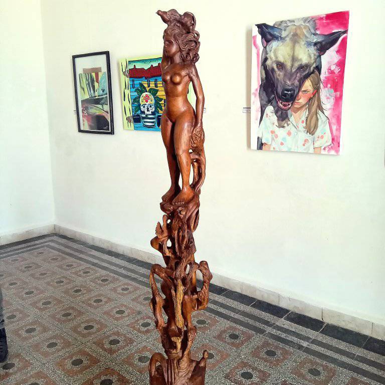 Cada muestra, según explica, ha sido una oportunidad para profundizar en su estilo, la figuración desde un punto de vista estilizado. Su técnica predilecta, la talla en madera, le permite dialogar con la textura, la veta y la resistencia del material. “La madera no miente, en ella queda el registro de cada golpe, de cada emoción”.