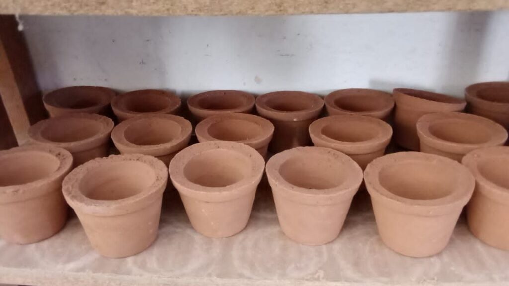 Elaborar figuras artesanales, como maceteros de diferentes formatos búcaros, ceniceros, jarras para su utilidad ornamental y hogareña todos con el empleo del barro, es el empeño de siete artistas que de lunes a viernes en horario laboral pueden verse en esta institución.