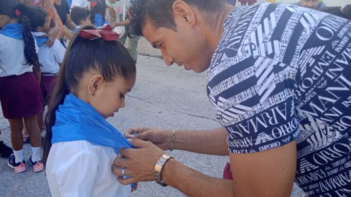 Manzanillo. Octubre 8.- Más de mil niños manzanilleros de primer grado recibieron en esta jornada la pañoleta azul que los identifica como pioneros Moncadistas, hecho que es tradición cada mes de octubre en nuestro país.En la ceremonia municipal efectuada en el parque central Carlos Manuel de Céspedes de aquí, 137 pequeños del seminternado Pedro Soto … Sigue leyendo Reciben la pañoleta azul niños de primer grado en Manzanillo