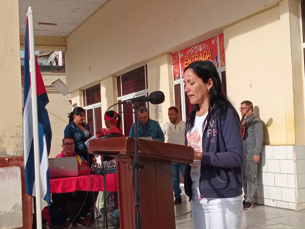 La joven educadora Virgen León Sánchez, al tomar la palabra, expresó la determinación de la juventud manzanillera de continuar y defender la obra social iniciada en enero de 1959.