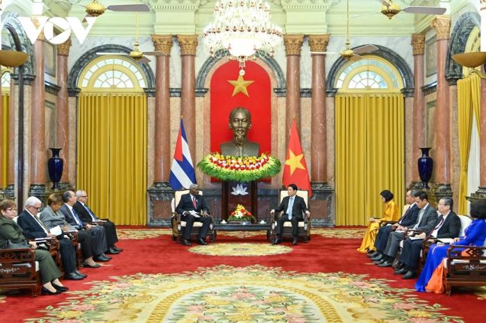 Además, agradeció al pueblo, al Partido, a la Asamblea Nacional y al Gobierno vietnamitas por su apoyo invariable en la lucha por el fin del bloqueo económico, comercial y financiero impuesto por el Gobierno de Estados Unidos desde hace más de seis décadas y por la exclusión de Cuba de la lista de Estados supuestamente patrocinadores del terrorismo. En este sentido, reconoció especialmente el reciente pronunciamiento del Presidente Luong Cuong contra el bloqueo estadounidense, durante el debate general del 80 período de sesiones de la Asamblea General de las Naciones Unidas.